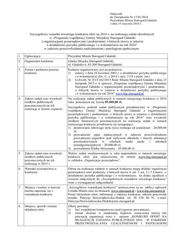 Szczegółowe warunki otwartego konkursu ofert na 2016 r. na