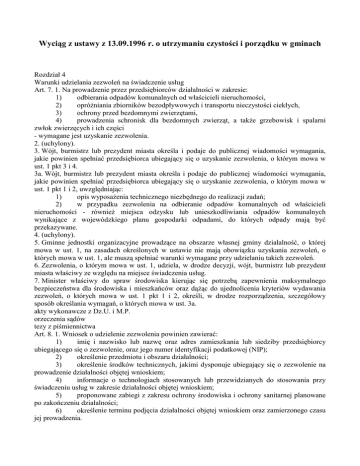 Wyciąg z ustawy z 13.09.1996 r. o utrzymaniu czystości i porządku w