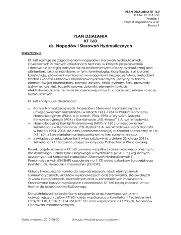 PLAN DZIAŁANIA KT 160 ds. Napędów i Sterowań Hydraulicznych