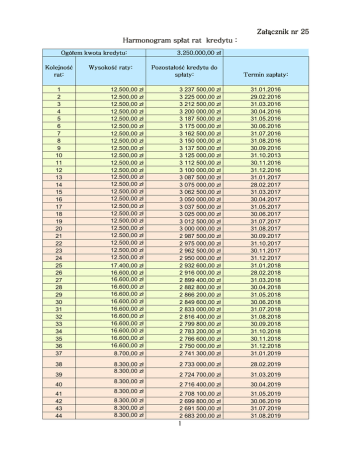 1 Załącznik nr 25 Załącznik nr 25 Harmonogram spłat rat kredytu