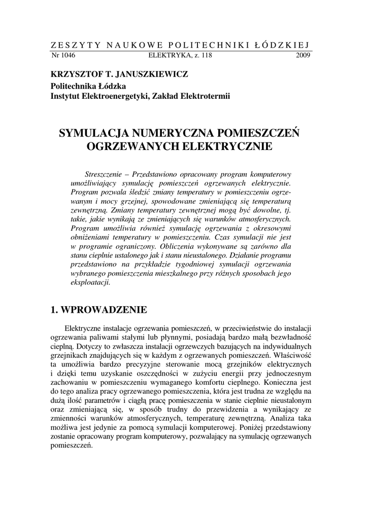symulacja numeryczna pomieszczeń ogrzewanych elektrycznie