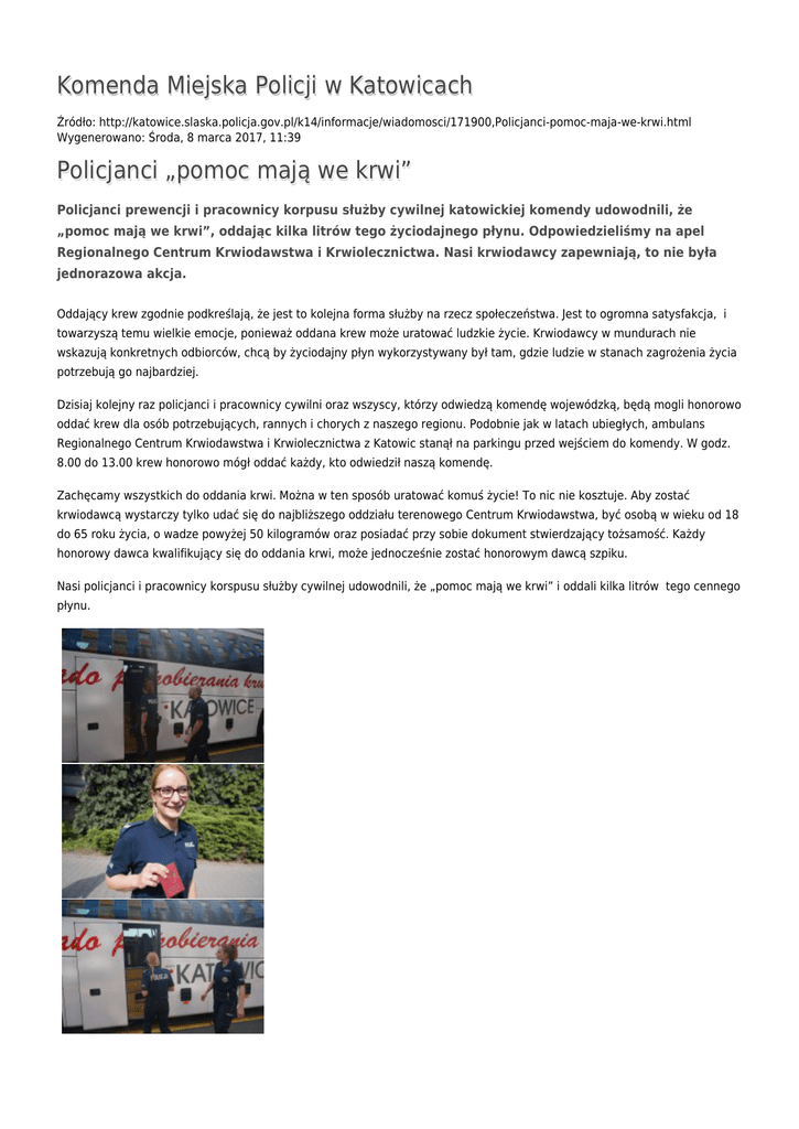 pomoc mają we krwi - Komenda Miejska Policji w Katowicach