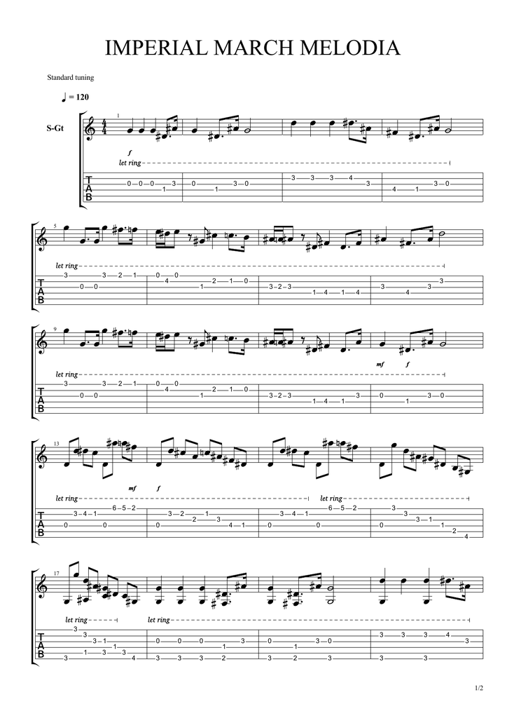 IMPERIAL MARCH MELODIA Standard tuning = 120 1 S-Gt 0 0 0 3 1 0 3 1 3 0 3 3 4 3 4 3 1 0 5 3 3 0 0 0 0 2 1 0 4 0 2 1 1 0 3 2 3 1 4 1 1 4 1 4 3 3 4 3 9 3 3 2 1 0 4 0 2 1 1 0 3 2 3 3 0 3 1 0 13 6 5 2 3 4 1 0 0 3 2 0 1 2 3 3 4 1 4 0 6 1 0 5 2 3 3 0 3 1 1 2 4 17 3 3 3 1 3 1 3 1 3 4 0 0 0 3 3 3 1 2 3 0 3 1 2 3 0 3 3 3 3 3 4 3 3 1/2 21 3 4 1 3 3 0 2 3 0 3 0 0 2 1 0 0 2 3 4 0 1 4 4 2 1 4 4 2 1 4 4 0 3 2 3 1 1 4 1 4 2 25 3 1 3 2 3 0 3 2 1 0 0 2 3 4 0 1 4 4 0 3 2 3 1 1 4 3 1 2 29 0 1 3 2 3 0 0 1 3 3 3 3 5 5 3 3 0 4 6 1 0 0 5 2 0 3 0 2 0 1 2 0 3 3 4 1 0 3 0 4 0 6 1 0 5 2 0 33 3 0 3 3 3 1 0 0 1 2 4 3 3 1 3 3 1 3 1 3 2 1 1 4 3 3 3 2 3 1 2 3 3 3 3 5 5 3 2/2