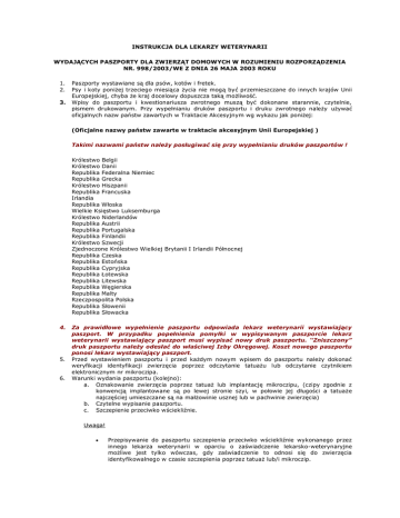 Instrukcja dla lekarzy weterynarii wydających paszporty dla zwierząt