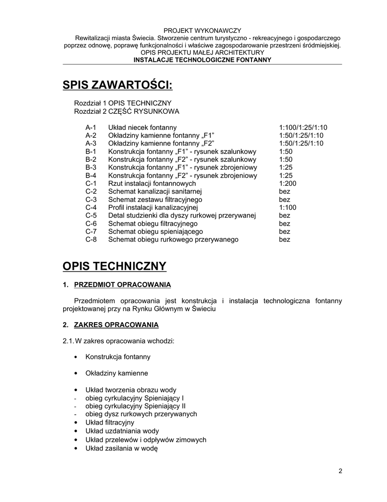 SPIS ZAWARTOŚCI: OPIS TECHNICZNY