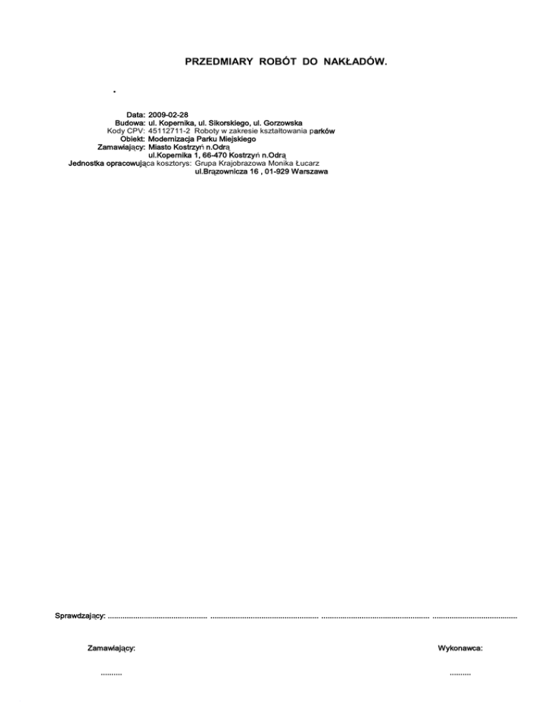 PRZEDMIARY ROBÓT DO NAKŁADÓW. .