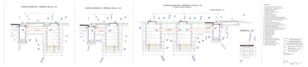 OZNACZENIA: STUDNIA 5 - wpust deszczowy uliczny klasy D400 6 - korek z betonu kl. B10 19 o 12 2% 20 126,12 2% 126,15 126,05 19 20 19 27 9 20 126,12 5 11 2% 126,12 126,25 13 - umocnienie rury z chudego betonu kl. B6/9 126,08 28 125,47 125,45 1% 125,50 1% spadki wynikowe 125,46 125,49 spadki wynikowe 125,48 12 4 125,54 125,48 18 - bitumiczna masa zalewowa do nawierzchni asfaltowych 1:20 3 4 4 1 28 2 124,56 3 1 1 28 9 10 22 9 26 21 17 16 15 14 13 12 2 124,59 9 26 22 21 26 28 I 3 I 29 30 o 5 20 o 19 12 29 11 29 o 11 5 27 9 124,63 2 26 18 Jednostka projektowa 30 Nazwa opracowania PROJEKT BUDOWLANY Nazwa obiektu Budowa chodnika w pasie drogi niepublicznej wewn 6 28 6 7 8 KOMAT Pracownia Projektowa Andrzej Pasik ul. Rawska 59/22 96-100 Skierniewice Adres obiektu 6 7 8 123,78 123,75 123,75 123,88 7 Waleriany, Mrozy gm. Puszcza Maria 8 Inwestor Gmina Puszcza Maria Nazwa rysunku Konstrukcja studni ch Projektant Podpis mgr in 23 24 25 23 24 25 23 24 25 23 24 25 9 10 Asystent projektanta mgr in Data Skala 1:20 Nr rysunku 14 Nr strony