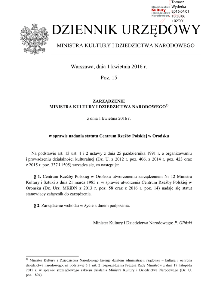 DZIENNIK URZĘDOWY - Centrum Rzeźby Polskiej w Orońsku