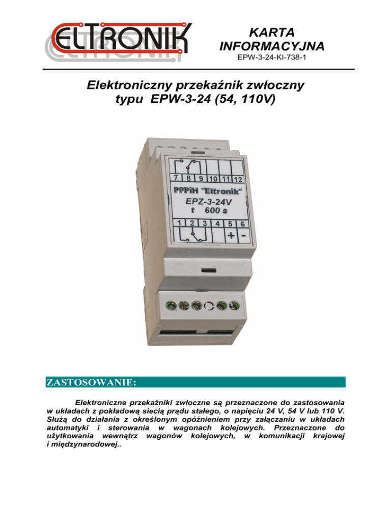 Elektroniczny przekaźnik zwłoczny typu EPW-3-24 (54, 110V)