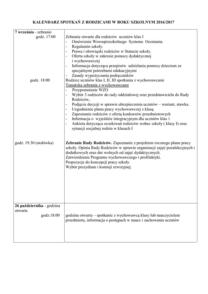 Kalendarz spotkań z rodzicami w roku szkolnym 2016/2017