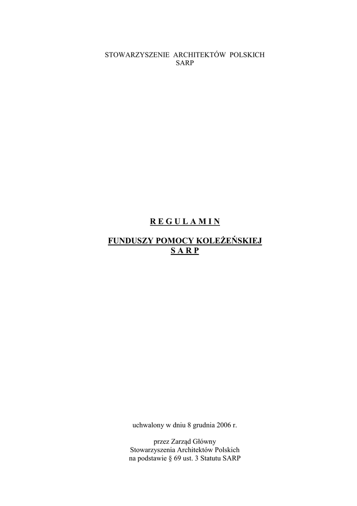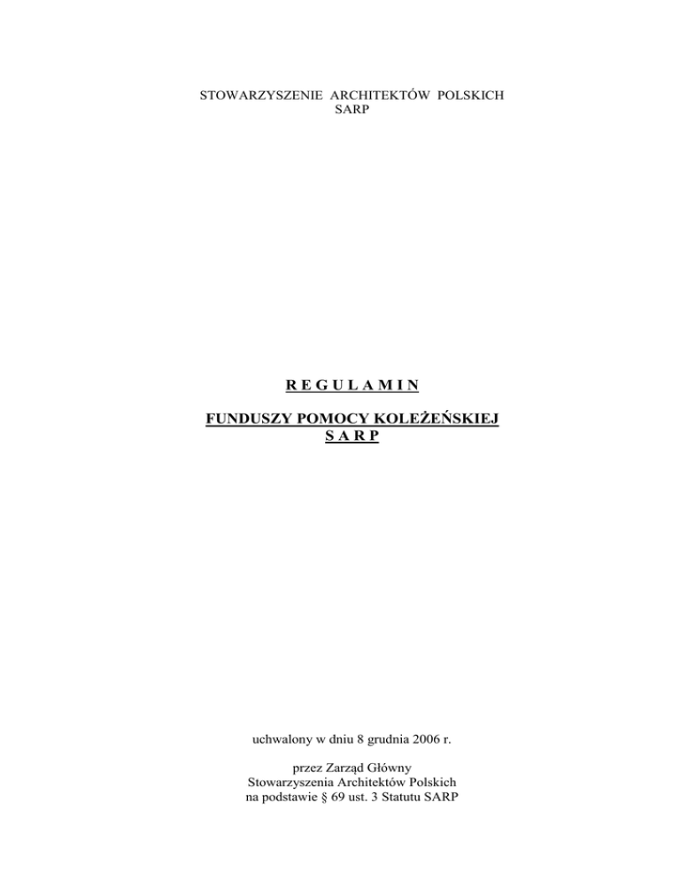 regulamin funduszy pomocy koleżeńskiej sarp