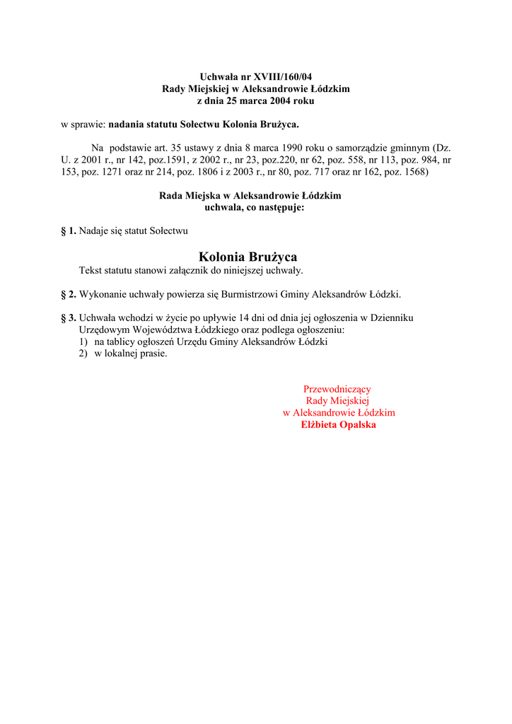 Kolonia Brużyca - BIP - Gmina Aleksandrów Łódzki