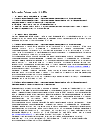 Informacje z Ratusza z dnia 19.12.2014 1. III Sesja Rady