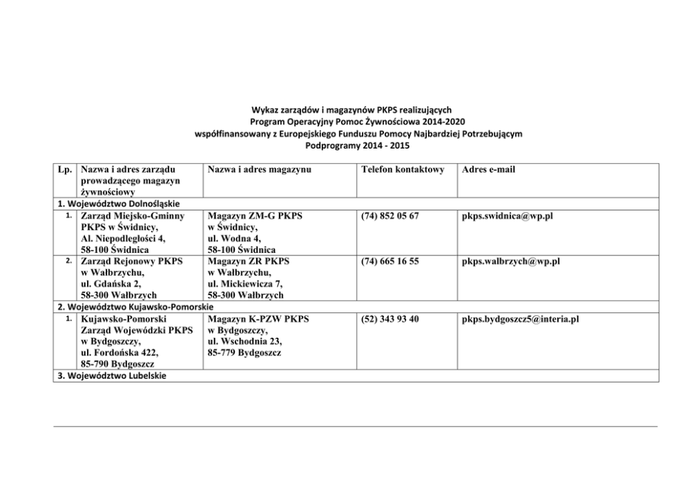Wykaz zarządów i magazynów PKPS realizujących Program