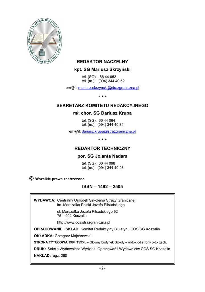 01 Spis treœci - Centralny Ośrodek Szkolenia Straży Granicznej w