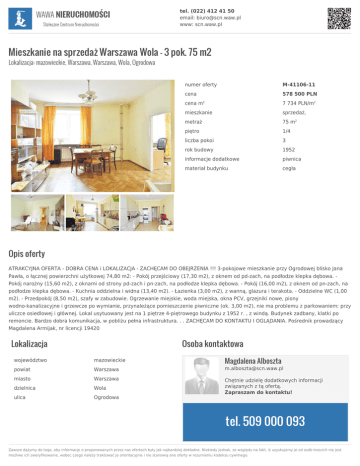 Mieszkanie na sprzedaż Warszawa Wola 75m2 - oferta M-41106-11