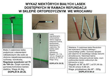 Wykaz niektórych białych lasek dostępnych w ramach refundacji
