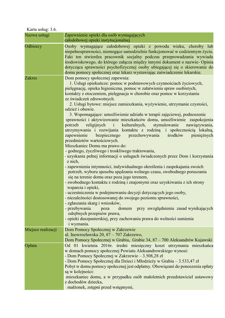 Karta usług: 3.6. Nazwa usługi Zapewnienie opieki