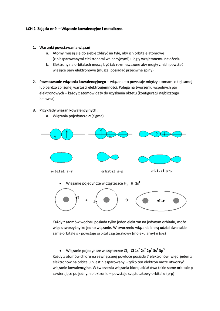 LCH 2 Zajęcia nr 9 – Wiązanie kowalencyjne i metaliczne. 1