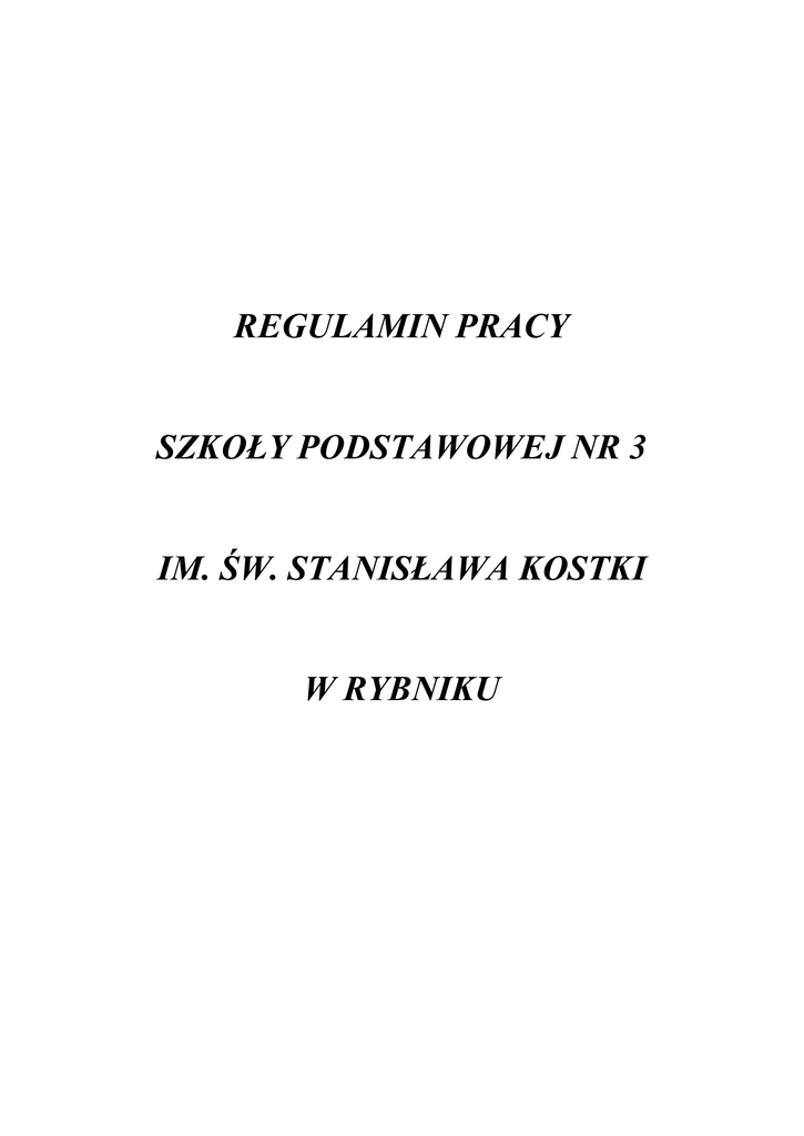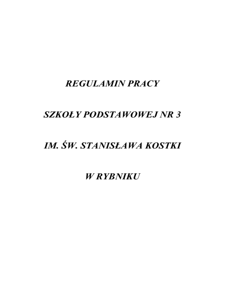 regulamin pracy - BIP - Szkoła Podstawowa nr 3 im. św. Stanisława
