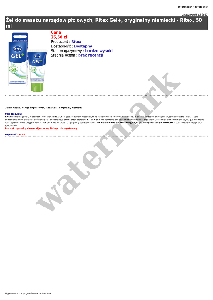 Informacje o produkcie Utworzono 08-03-2017 Żel do masażu narządów płciowych, Ritex Gel+, oryginalny niemiecki - Ritex, 50 ml Cena : 25,50 zł er m ar k Producent : Ritex Dostępność : Dostępny Stan magazynowy : bardzo wysoki Średnia ocena : brak recenzji Żel do masażu narządów płciowych, Ritex Gel+, oryginalny niemiecki Opis produktu: Ritex niemiecka jakość, niezawodna od 65 lat. RITEX Gel + jest produktem medycznym do stosowania do smarowania i masażu w okolicy narządów płciowych. Wysoce skuteczne RITEX + Żel z dodatkiem aloesu, dostarcza skórze wilgoci i dodatkowo ją chroni przed otarciem. RITEX Gel + ma neutralne pH, pozbawiony barwników i zapachów. Opłacalne i ekonomiczne w użyciu. Już minimalna ilość zapewnia wiele przyjemności. RITEX Gel + jest w 100% kompatybilny z prezerwatywą. Nie ma działania antykoncepcyjnego. Jest on wytwarzany w Niemczech pod nadzorem najlepszych specjalistów. Produkt oryginalny niemiecki jest nowy i fabrycznie zapakowany w at Pojemność: 50 ml Wygenerowano w programie www.oscGold.com