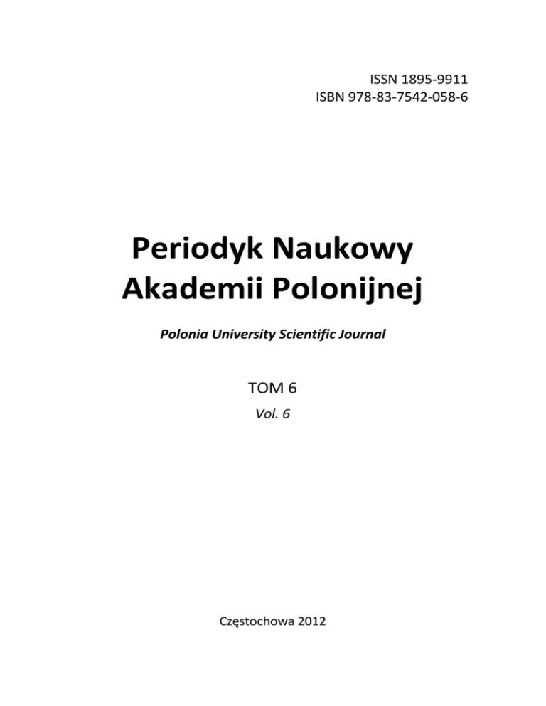 ISSN 1895-9911 ISBN 978-83-7542-058-6 Periodyk Naukowy Akademii Polonijnej Polonia University Scientific Journal TOM 6 Vol. 6 Częstochowa 2012 Redaktor naukowy: dr Magdalena Pluskota Sekretarz redakcji: dr Zbigniew Jacek Pyskło Redaktorzy tematyczni: prof. dr hab. Leszek Bednarczuk (językoznawstwo) prof. zw. dr hab. Adam Błaś (prawo i administracja) prof. zw. dr hab. Zbigniew Domański (matematyka, fizyka, informatyka) dr Adam Krzymowski (dyplomacja i polityka zagraniczna) ks. prof. dr hab. Stanisław Łupiński (europeistyka) prof. zw. dr hab. inż. Zbigniew Piasek (dziedzictwo polonijne) prof. dr Bogdan Piotrowski (literatura światowa) dr hab. Stanisław Roszkowski, prof. UŁ (translatoryka i traduktologia) prof. zw. dr hab. med. Jerzy Supady (pielęgniarstwo i zdrowie publiczne) dr hab. Urszula Szubert – Zarzeczny, prof. AP (ekonomia) prof. dr Gerrit de Vylder (zrównoważony rozwój) prof. zw. dr hab. M. Jolanta Żmichrowska (edukacja) prof. dr Andrzej Kryński (edukacja) Redaktor statystyczny: dr Anna Buczkowska Stali współpracownicy: prof. zw. dr hab. Wiesław Bokajło (Wrocław) prof. zw. dr hab. Józef Dołęga (Warszawa) dr hab. Wanda Grelowska, prof. WWSZiP (Wałbrzych) dr hab. Jerzy Koperek, prof. KUL (Lublin) Prof. zw. dr hab. Edward Jarmoch Rada programowa: dr hab. Beata Gofron, prof. AP (przewodniczący) prof. zw. dr hab. Kazimierz Bobowski dr hab. Wojciech Podlecki prof. dr hab. Edward Walewander dr n. med. Włodzimierz Wróbel dr Piotr Zazula (sekretarz) Konsultanci naukowi: prof. dr hab. Krystyna Chałas dr hab. Jan Mazur, prof. UP JPII prof. dr hab. Tadeusz Chrobak dr hab. Piotr Stec, prof. AP dr. hab. Józef Chmiel, prof. AP Rada konsultacyjna: prof. Aime Caekelbergh (Belgia) prof. Gerrt Demuijnek (Francja) prof. Martin Guimfac (Kamerun) prof. Cyril Hišem (Słowacja) prof. Matthias Kramer (Niemcy) prof. Renata Myšková (Czechy) prof. Charles Ngadjifna (Kamerun) prof. Roman Nir (USA) prof. Marite Opincane (Łotwa) prof. R. R. Posada (Kolumbia) prof. dr hab. Rostysław Radyszewski (Ukraina) prof. dr hab. Nadija Skotna (Ukraina) prof. Hellen Suzanne (Francja) dr Marian Szablewski (Australia) prof. Zdzisław Wesołowski (USA) prof. Herkulan Wróbel (Argentyna) prof. Jordan Zjawiony (USA) Recenzenci 2012 prof. dr Léonce Bekemans (Włochy) prof. dr hab. Tadeusz Borys prof. Pierre Boubou (Kamerun) prof. zw. dr hab. Stanisław Dolata dr hab. Maciej Gitling, prof. AP dr hab. Teresa Grabińska, prof. UP im. KEN prof. zw. dr hab. Edward Jarmoch dr hab. Piotr Korzekwa, prof. AJD dr hab. Dariusz Walencik, prof. UO prof. dr hab. Mirosław Zabierowski dr hab. Ivan Zymomrya (Ukraina) prof. dr hab. Mykoła Zymomrya (Ukraina) © Copyright by Wydawnictwo „Educator” Częstochowa 2012, wydanie I Wydawnictwo Akademii Polonijnej w Częstochowie „Educator” ul. Pułaskiego 4/6, 42-200 Częstochowa tel. +48 34 368 42 15, fax +48 34 324 96 62 e-mail: [email protected], www.ap.edu.pl PERIODYK NAUKOWY AKADEMII POLONIJNEJ 2012 nr 1 (6) Spis treści PRZEDMOWA .............................................................................................. 7 Stanisław Łupiński RUOLO DELL’AMMINISTRAZIONE NELLA VITA DELLO STATO ................... 15 Andrzej Kryński NOWOCZESNA EDUKACJA I WYZWANIA RYNKU PRACY ........................... 23 Maciej Gitling ROLA ORGANIZACJI POZARZĄDOWYCH W ROZWIĄZYWANIU PROBLEMÓW LUDZI WYKLUCZONYCH SPOŁECZNIE ................................ 29 Agnieszka Skowron ORGANIZACJE POZARZĄDOWE W SFERZE POMOCY OFIAROM PRZESTĘPSTW ........................................................................................... 43 Stanisław Leszek Stadniczeńko TRZECI SEKTOR JAKO RZECZNIK POTRZEB SPOŁECZNYCH I PRAW CZŁOWIEKA ............................................................................................... 57 Agnieszka Grzesiok-Horosz ORGANIZACJE ZBIOROWEGO ZARZĄDZANIA JAKO STOWARZYSZENIA .... 75 Maciej Thorz KONSTYTUCYJNE I USTROJOWE GWARANCJE DLA DZIAŁALNOŚCI „TRZECIEGO SEKTORA“ W RZECZYPOSPOLITEJ POLSKIEJ ......................... 91 Tomasz Musialik ORGANIZACJE POZARZĄDOWE W PRAWIE MIĘDZYNARODOWYM ....... 111 Joanna Szymoniczek ORGANIZACJE POZARZĄDOWE W SYSTEMIE ORGANIZACJI NARODÓW ZJEDNOCZONYCH.................................................................................... 125 Paweł Witkowski NADZÓR NAD INSTYTUCJAMI TRZECIEGO SEKTORA .............................. 139 SPIS TREŚCI Beata Gofron EDUKACJA W ŚWIECIE NOWYCH TECHNOLOGII INFORMACYJNOKOMUNIKACYJNYCH ............................................................................... 155 Brice Megnono WYCHOWANIE A IDEA MIĘDZYKULTUROWOŚCI W ŚWIETLE ECCLESIA IN AFRICA .................................................................................................... 169 Magdalena Pluskota W TROSCE O EMIGRACJĘ. WYCHOWAWCZO – FORMACYJNY ASPEKT WAŻNIEJSZYCH DOKUMENTÓW APOSTOLSKICH ................................... 173 Paweł Kazibudzki NOTE ON SOME IMPROVEMENTS TO THE ANALYTIC HIERARCHY PROCESS ................................................................................................................ 191 Krystyna Mizerska, Włodzimierz Wróbel, Piotr Korzekwa POTRZEBY PACJENTÓW PSYCHICZNIE CHORYCH ................................... 201 6 PERIODYK NAUKOWY AKADEMII POLONIJNEJ 2012 nr 1 (6) PRZEDMOWA Tom niniejszy charakteryzuje się zróżnicowaniem problematyki badawczej i przedstawia rozległe spektrum zagadnień naukowych. Zawiera teksty przygotowane przez autorów prezentujących różnorodne metodologie badawcze. Zróżnicowanie tematyki oraz stosowanych metodologii niewątpliwie wynika z wieloaspektowości i wielopłaszczyznowości omawianych przez autorów problemów, z rozwiązaniem których borykają się dziś społeczeństwa. Czytelnik łatwo zauważy jednak, iż swoistym leitmotivem przewijającym się w dużej części tekstów jest działalność organizacji pozarządowych, zwanych też organizacjami non-profit, stanowiących trzeci sektor w org