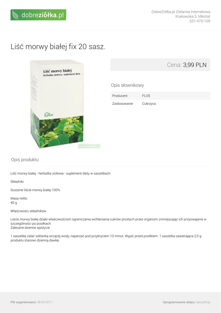 Liść morwy białej fix 20 sasz. - DobreZiółka.pl Zielarnia Internetowa