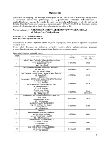 Ogłoszenie o wyborze najkorzystniej Opracowanie koncepcji …