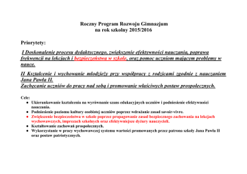 Roczny program rozwoju - Gimnazjum im. Jana Pawła II w