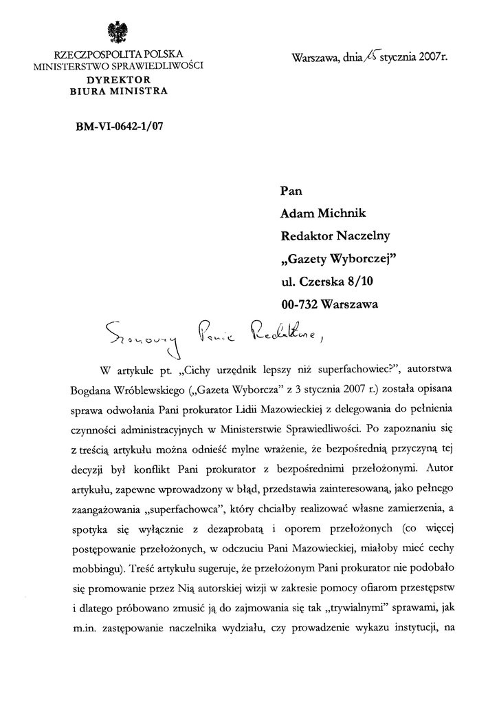 do Ministra Sprawiedliwości