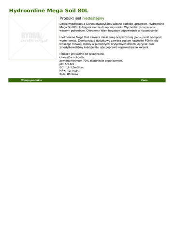 Hydroonline Mega Soil 80L Produkt jest niedostępny Dzieki współpracy z Canna stworzyliśmy własne podłoże uprawowe. Hydroonline Mega Soil 80L to bogata ziemia do uprawy roślin. Wychodzimy na przeciw waszym potrzebom. Oferujemy Wam bogatszy odpowiednik w nizszej cenie! Hydroonline Mega Soil Zawiera mieszankę oczyszczonej gleby, perlit, kompost, worm humus. Ziemia nasza dodatkowo zawiera zestaw nawozów PGmix dla lepszego rozwoju rośliny w pierwszych, krytycznych dniach jej życia, oraz zmodyfikowaliśmy ilość perlitu, aby poprawić napowietrzanie korzeni. Podłoże jest wolne od szkodników, chwastów i chorób, zawiera minimum 70% składników organicznych, pH: 5,5-6,5 , EC: 1,1-1,3mS/cm, NPK: 12/14/24. Ilość: 80 litrów Wersja produktu Powered by TCPDF (www.tcpdf.org) Cena