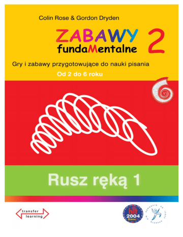 Spis treÊci WITAMY w „Zabawach fundaMentalnych”! ......................................................................................... 4 „Rusz r´kà” ................................................................................................................................................................ 6 Zabawy z szablonami ......................................................................................................................................... 8 Lewor´cznoÊç jest OK! ...................................................................................................................................... 8 Bawcie si´ radoÊnie, ale jednak… ............................................................................................................. 9 „Szlaczki – zygzaczki” ..................................................................................................................................... 10 Scenariusze zabaw ............................................................................................................................... 14 ÷ 34 Jak si´ bawiç, aby dziecko si´ rozwija∏o? ......................................................................................... 35 Czego dziecko mo˝e si´ nauczyç podczas wspólnych zabaw? ....................................... 37 Program „Zabawy FundaMentalne” to… ........................................................................................... 38 4 „Zabawy fundaMentalne” WITAMY w „Zabawach fundaMentalnych”! Drogi Rodzicu! Oddajemy w Twoje r´ce seri´ ksià˝eczek o tym, jak bawiç si´ z dzieckiem, by efektywnie i szybko uczy∏o si´ wielu nowych umiej´tnoÊci. Umiej´tnoÊci te sà konieczne, by przygotowaç dziecko do zadaƒ, jakie stawia przed nim szko∏a. Zabawa jest naukà, tak˝e dla rodzica. Zapraszamy Ci´ do cudownej odysei umys∏u i uczuç, podczas której, towarzyszàc swojemu dziecku w jego indywidualnym rozwoju, rozwiniesz równie˝ swoje umiej´tnoÊci pedagogiczne. Nasze zabawy umacniajà rodzin´ pokazujàc, jak w efektywny i przyjemny sposób sp´dzaç wspólnie wolny czas. To ∏atwe, wystarczy spróbowaç! Program „Zabawy fundaMentalne” to: 1. Przewodnik pt. „Zabawa jest naukà” wraz z p∏ytà CD. Przewodnik pe∏ni rol´ koordynatora ca∏ego programu ze wzgl´du na zamieszczone w nim cenne informacje dla rodziców. W przewodniku znajdziesz: – opis za∏o˝eƒ programu „Zabawy fundaMentalne”; – prezentacj´ koncepcji oÊmiu inteligencji i przedstawienie jej znaczenia dla harmonijnego rozwoju dziecka; – szereg cennych uwag o tym, w jaki sposób pracowaç z dzieckiem, aby osiàgnàç jego sukces i zadowolenie. Na p∏ycie CD znajdziesz: – wiele ciekawych opracowaƒ graficznych i tekstowych, b´dàcych uzupe∏nieniem merytorycznym ksià˝eczek – sà to tzw. materia∏y do wydruku, dzi´ki którym wzrasta atrakcyjnoÊç wielu zabaw; – dodatkowe informacje oraz uzupe∏niajàce opisy zabaw; – pliki muzyczne. Potrzebne pliki znajdziesz szybko w odpowiednich bankach. „Zabawy fundaMentalne” 2. Ksià˝eczki z zabawami. Serce programu stanowià karty z zabawami oznaczone symbolem muszli . Sà one êród∏em inspiracji do twórczego i aktywnego sp´dzania czasu z dzieckiem. Ksià˝eczki mogà byç wykorzystywane samodzielnie, ale wiele cennych wskazówek i çwiczeƒ znajdziesz na za∏àczonej do przewodnika pt. „Zabawa jest naukà” p∏ycie CD – ROM (w opisie zabaw znajdziesz odsy∏acze do specjalnych tematycznych banków). O tym, czego w nich szukaç, poinformujà Ci´ pomocne ikony: – oznaczenie tym symbolem karty z zabawami lub historyjki to sygna∏, ˝e mo˝esz skorzystaç z zawartych na p∏ycie CD: 1. dodatkowych informacji – i 2. materia∏ów do wydruku (mogà to byç litery i cyfry, s∏owa, rysunki, szlaczki itp.) – 3. dodatkowych zabaw (np. pomys∏ów, w jaki sposób dostosowaç konkretnà zabaw´ do potrzeb dziecka niepe∏nosprawnego itp.) – Bawmy si´! Jakie zabawy – taki cz∏owiek! 5 6 O ksià˝eczce „Rusz r´kà” „Rusz r´kà” Jest to ksià˝eczka, w której proponujemy zabawy prowadzàce do integracji i skoordynowania ruchów potrzebnych do nauki pisania. Zabawy zosta∏y dobrane tak, aby dziecko przechodzi∏o od tzw. du˝ych ruchów do coraz bardziej wyspecjalizowanych. Nawet bardzo ma∏e dziecko ch´tnie rysuje i maluje. Poczàtkowe próby graficzne bywajà nieudolne i powodujà niejednokrotnie nabycie przez dziecko z∏ych nawyków w trzymaniu narz´dzia do pisania: kredki, o∏ówka, d∏ugopisu. Od samego poczàtku warto zadbaç o to, by dziecko trzyma∏o narz´dzie s∏u˝àce do pisania w sposób prawid∏owy i ustawiaç mu na nim palce w odpowiedni sposób. Dla maluchów polecamy specjalne, pomocne przybory. Dla dziecka w wieku od 1 do 3 roku ˝ycia najlepszym przyborem do pisania jest okràg∏a kredka – kula, poniewa˝ mo˝e chwytaç jà ca∏à d∏onià. Na plastikowej kuli umieszczone sà woskowe kredki w kszta∏cie pó∏koli. Podczas rysowania dziecko obraca kredkà i w ten sposób uzyskuje ró˝ne kolory. Ogromnà przyjemnoÊç sprawia mu rysowanie dwoma kolorami jednoczeÊnie. Kredka daje mo˝liwoÊç uzyskania „rozmachu” w rysowaniu, poniewa˝ woskowe koƒcówki zapewniajà odpowiedni poÊlizg. Zwi´ksza to dynamik´ ruchu, dzi´ki czemu dziecko nie ma tendencji do zwi´kszania nacisku r´ki na kartk´. Na tym etapie zaleca si´ równie˝, aby dziecko pos∏ugiwa∏o si´ farbami do malowania palcami. Malowanie ca∏à d∏onià, wykonywanie odcisków stóp i ràk, bezpoÊredni kontakt palców z farbà i mo˝liwoÊç szybkiego uzyskiwania fantastycznych efektów wizualnych – to wszystko sprawia mu ogromnà radoÊç i satysfakcj´, zach´cajàc do cz´stego powtarzania. Warto malowaç na du˝ym arkuszu papieru pakowego na pod∏odze – daje to mo˝liwoÊç przemieszczania si´ podczas malowania, a tak˝e umo˝liwia np. wspólne rodz