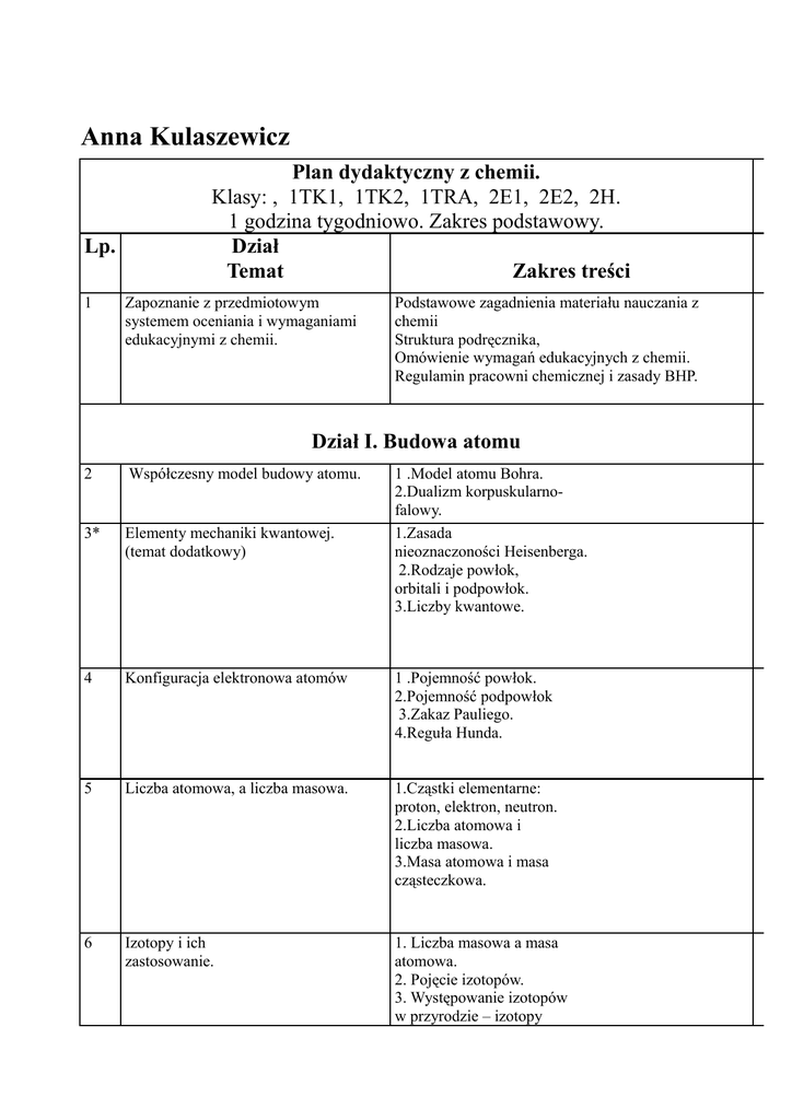Anna Kulaszewicz Plan dydaktyczny z chemii.
