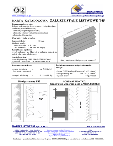 KARTA KATALOGOWA ŻALUZJE STAŁE LISTWOWE T45