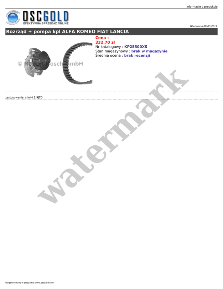 Informacje o produkcie Utworzono 08-03-2017 Rozrząd + pompa kpl ALFA ROMEO FIAT LANCIA Cena : 332,70 zł w at zastosowanie: silniki 1,9JTD er m ar k Nr katalogowy : KP25500XS Stan magazynowy : brak w magazynie Średnia ocena : brak recenzji Wygenerowano w programie www.oscGold.com