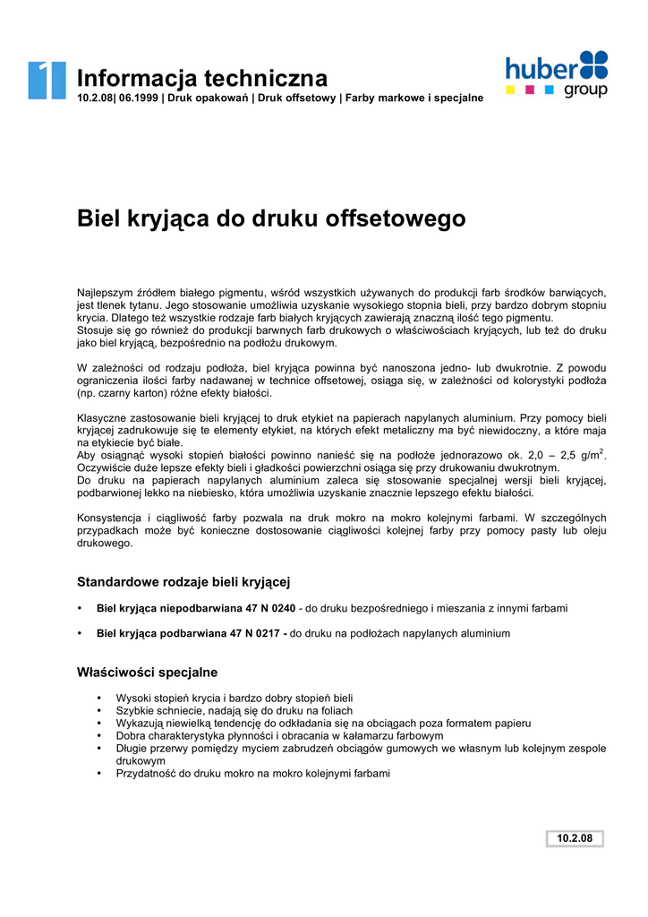 Informacja techniczna Biel kryjąca do druku offsetowego