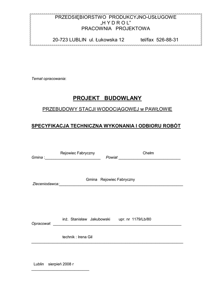 specyfikacja paw£ów suw. - Gmina Rejowiec Fabryczny