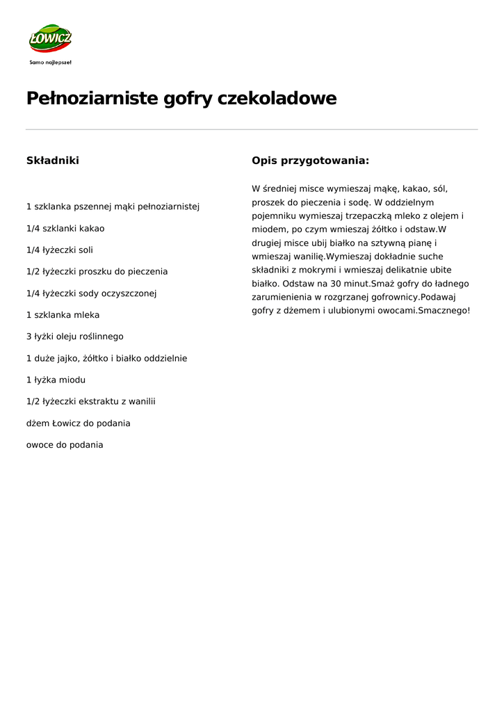 Przepis Łowicz: Pełnoziarniste gofry czekoladowe