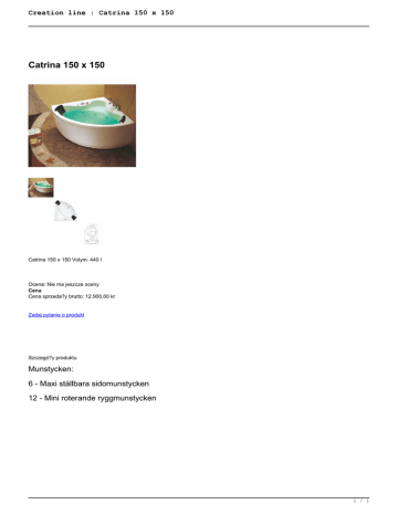 Creation line : Catrina 150 x 150 Catrina 150 x 150 Catrina 150 x 150 Volym: 440 l Ocena: Nie ma jeszcze oceny Cena Cena sprzeda?y brutto: 12.900,00 kr Zadaj pytanie o produkt Szczegó?y produktu Munstycken: 6 - Maxi ställbara sidomunstycken 12 - Mini roterande ryggmunstycken 1 / 1 Powered by TCPDF (www.tcpdf.org)