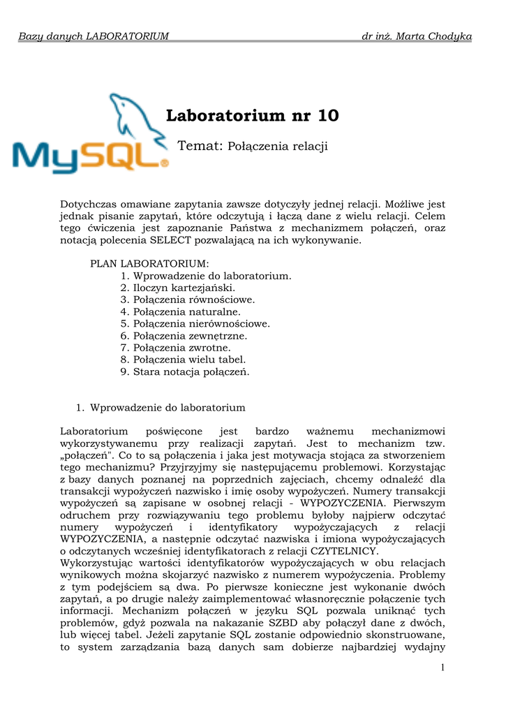 jednak pisanie zapytań, które odczytują i łączą dane z wielu relacji. Celem