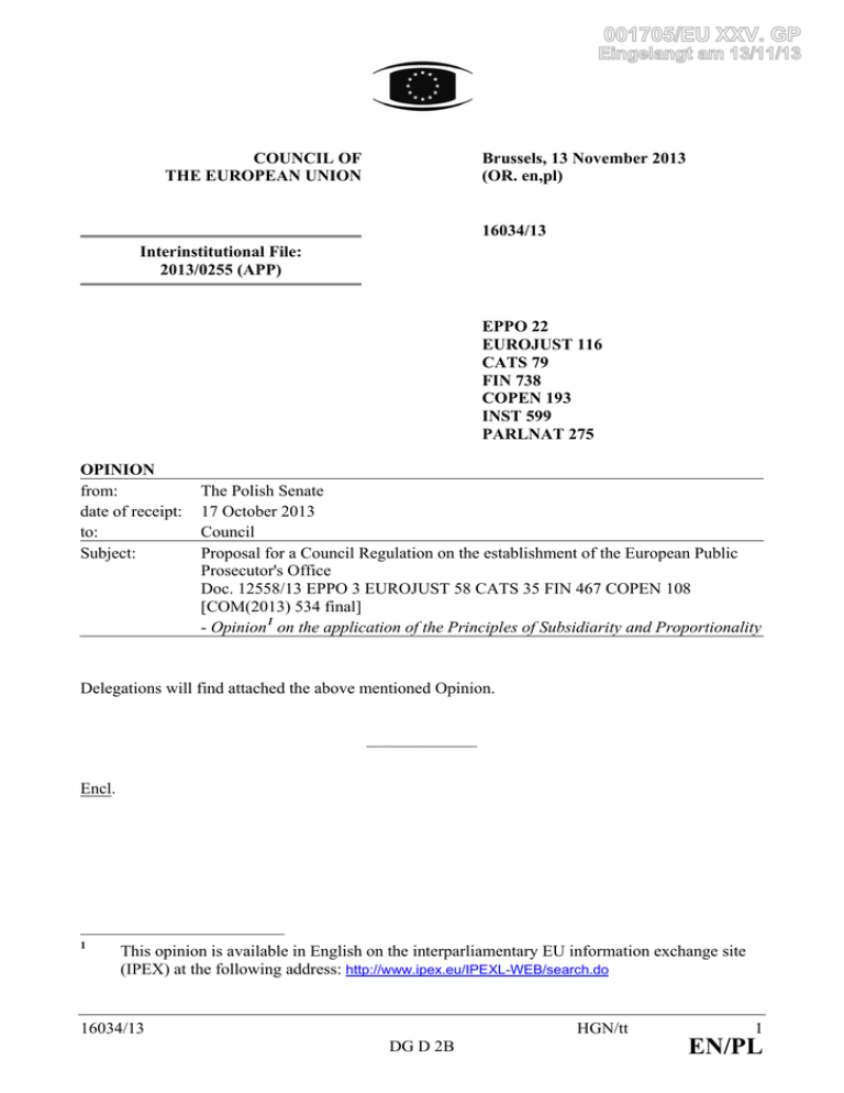 001705/EU XXV. GP Eingelangt am 13/11/13 COUNCIL OF THE EUROPEAN UNION Brussels, 13 November 2013 (OR. en,pl) 16034/13 Interinstitutional File: 2013/0255 (APP) EPPO 22 EUROJUST 116 CATS 79 FIN 738 COPEN 193 INST 599 PARLNAT 275 OPINION from: date of receipt: to: Subject: The Polish Senate 17 October 2013 Council Proposal for a Council Regulation on the establishment of the European Public Prosecutor's Office Doc. 12558/13 EPPO 3 EUROJUST 58 CATS 35 FIN 467 COPEN 108 [COM(2013) 534 final] - Opinion 1 on the application of the Principles of Subsidiarity and Proportionality Delegations will find attached the above mentioned Opinion. _____________ Encl. 1 This opinion is available in English on the interparliamentary EU information exchange site (IPEX) at the following address: http://www.ipex.eu/IPEXL-WEB/search.do 16034/13 HGN/tt DG D 2B 1 EN/PL ANNEX ________________ 16034/13 ANNEX HGN/tt DG D 2B 2 EN/PL SENAT RZECZYPOSPOLITEJ POLSKIEJ VIII KADENCJA :DUV]DZDGQLDSDĨG]LHUQLNDU Druk nr E42 OPINIA KOMISJI SPRAW UNII EUROPEJSKIEJ :QLRVHNGRW\F]ąF\UR]SRU]ąG]HQLD5DG\ZVSUDZLHXVWDQRZLHQLD3URNXUDWXU\ Europejskiej 0DUV]DáHN6HQDWXVNLHURZDáGRNRPLVMLSURMHNWDNWXSUDZQHJR8(SURMHNWVWDQRZLVND53Z VSUDZLHWHJRGRNXPHQWX]RVWDáSU]HND]DQ\ZGQLXZU]HĞQLDU .RPLVMDUR]SDWU]\áDZQLRVHNQDSRVLHG]HQLXZGQLXSDĨG]LHUQLNDU Sygnatura dokumentu Komisja Europejska COM(2013) 534 Rada UE (-) Edmund Wittbrodt 3U]HZRGQLF]ąF\.RPLVML Spraw UnLL(XURSHMVNLHM 16034/13 ANNEX HGN/tt DG D 2B 3 EN/PL Opinia .RPLVML6SUDZ8QLL(XURSHMVNLHM6HQDWX53 GRW\F]ąFDSURMHNWXUR]SRU]ąG]HQLD5DG\ ZVSUDZLHXVWDQRZLHQLD3URNXUDWXU\(XURSHMVNLHM COM(2013)534 SU]\MĊWDQDSRVLHG]HQLXZGQLXSDĨG]LHUQLNDU 1. KSUE popiera projekt utworzenia Prokuratury Europejskiej, jako organu Ùȱ ȱ ïȱ £¿ ȱ ȱ £¿ȱ à ȱ ¢ȱ ȱ Europejskiej. 2. ȱ ȱ ȱ £¢£ȱ £ȱ ȱ £ £¿ȱ ¢Ù£ȱ ȱȱïȱ£¿ ȱ£ ȱȱ ¢ȱȱǻǯȱŗŗȱ ǯȱŚǼȱ£ȱ£¢£ȱȱ ¢Ù£ȱ¢¢ȱČȱ ȱ¢ǰȱ¢ȱ£¿ ȱ £ ȱ ȱ ¢ȱ ȱ ȱ £ ȱ £ £ȱ £ȱ ¢ȱ £¿ ȱ ǻǯȱ ŗřȱ ǯȱ ŗǼǯȱ ȱ ȱ ȱ ȱ £ £ȱ ȱ £ȱ £ȱ £ȱ ïǰȱ Čȱ £ ȱ ïȱ £¢ȱ Ù¿ȱ ȱ ȱ ¢¢ȱ ȱÚ ȱ£Ù ǯȱgȱȱȱȱ£ȱȱ£ȱ ǰȱ ȱ ȱ £ȱ ïȱ £¿ ȱ £ ȱ ȱ ¢ȱ UEǯȱ ȱ ȱ ȱ ȱ £¢ȱ £¿ ȱ ȱ £¿ȱ à ȱ ¢ȱ ȱ £ ȱ £ £¢ȱ £ȱ ¢ȱ £¿ ȱ ¢£ȱ ¢Ù¢ȱ £ȱ Ùï ï°ȱ¢ȱǯȱ řǯ ȱ ȱ¿ȱ£ȱ£ȱ¢ȱȱury Europejskiej. ȱ ££àïȱ ȱ £ǰȱ Čȱ £ ȱ ¢£ȱ ¢£ȱ ȱ ȱ ¢ȱ ¢°ȱ ȱ ǰȱ £ȱ £Ùȱ £ ȱ £¢ȱ Ú ȱ£Ù ȱǯ 4. ȱȱ£ ¢ȱ ȱȱȱ¢ȱropejskiej oparty o à ȱ ¢ǰȱ ࣢ȱ ȱ £ïȱ ȱ ȱ ȱ ¢ȱ Ú ȱ £Ù ǯȱ ȱ Čȱ £ £ȱ ££ȱ ȱ ¢ȱ £ ȱ ȱ ȱ Ú ȱ £Ù ȱ£ȱȱ Úȱà ȱ ¢ǰȱȱȱȱ ȱČ ǰȱȱȱ ȱ ¢¢ȱ£ȱ ȱ ¢ȱ ǯȱ .......................................................................................................................................................... 7áRF]RQR]SROHFHQLD0DUV]DáND6HQDWX .......................................................................................................................................................... _____________ 16034/13 ANNEX HGN/tt DG D 2B 4 EN/PL SENAT RZECZYPOSPOLITEJ POLSKIEJ VIII KADENCJA :DUV]DZDGQLDSDĨG]LHUQLNDU Druk nr E43 OPINIA KOMISJI SPRAW UNII EUROPEJSKIEJ :QLRVHNGRW\F]ąF\UR]SRU]ąG]HQLD3DUODPHQWX(XURSHMVNLHJRL5DG\ZVSUDZLH $JHQFML8QLL(XURSHMVNLHMGV:VSyáSUDF\:\PLDUyZ6SUDZLHGOLZRĞFLZ6SUDZDFK .DUQ\FK(XURMXVW 0DUV]DáHN6HQDWXVNLHURZDáGRNRPLVMLSURMHNWDNWXSUDZQHJR8(SURMHNWVWDQRZLVND53Z VSUDZLHWHJRGRNXPHQWX]RVWDáSU]HND]DQ\ZGQLXZU]HĞQLDU .RPLVMDUR]SDWU]\áDZQLRVHNQDSRVLHG]HQLXZGQLXSDĨG]LHUQLNDU Sygnatura dokumentu Komisja Europejska COM(2013) 535 Rada UE (-) Edmund Wittbrodt 3U]HZRGQLF]ąF\.RPLVML 6SUDZ8QLL(XURSHMVNLHM 16034/13 ANNEX HGN/tt DG D 2B 5 EN/PL Opinia .RPLVML6SUDZ8QLL(XURSHMVkiej Senatu RP GRW\F]ąFDSURMHNWXUR]SRU]ąG]HQLD3DUODPHQWX(XURSHMVNLHJRL5DG\ ZVSUDZLH$JHQFML8QLL(XURSHMVNLHMGV:VSyáSUDF\:\PLDUyZ6SUDZLHGOLZRĞFL Z6SUDZDFK.DUQ\FK(XURMXVW COM(2013)535 SU]\MĊWDQDSRVLHG]HQLXZGQLXSDĨG]LHUQLNDU 5. ȱ ȱ ȱ ȱ ǻǼȱ £ȱ ¢ȱ £¢ȱ £ ȱ ££ȱ ¿ȱ ȱ ȱ ȱ ȱ ¢ȱ ȱ ¢ȱ ǰȱ w à¢ȱ¢£ ȱȱ ȱà ȱ ¢ȱ ¢ȱ£ȱ art. Şśȱȱȱonowaniu Unii Europejskiej. 6. ȱ £ȱ £ ȱ £¢ȱ ï°ȱ ǯȱ śśȱ ȱ £££ǰȱ £ȱ £ȱ à¢ȱ ȱ ¿£ȱ £ £¢ȱ ȱ ££¢ ȱ ȱ ¢ £ȱ £ǰȱ ¢à ȱ Úȱ ȱ à ȱ £¢ȱ £¢ȱ ££ȱ ǰȱ £Úȱ £¢ȱ £ȱ ȱ £ȱ £ȱ £ȱ ȱ ȱ ¢ȱ ¢ȱ ȱ £ȱ ¢£¢ȱ Eurojust. 7. ȱ ȱ ȱ £ǰȱ Čȱ ȱ ȱ £ȱ àÙ¢ȱ ȱ £ȱ ȱ ¢ȱ ȱ Ù£ȱ £ȱ ïȱ ǯȱ Şśȱ ǰȱ ȱ ȱ ȱ ȱ £££ȱ ȱ £°ȱ ¢ ȱ £ £ǰȱ àȱ Č ȱ ££¢ ¢ȱ ȱ £ ȱ ȱ £ȱ ȱ ¢ǰȱ ǯȱȱ ££ȱ ȱ £Ùȱ ȱ ȱ ȱ ȱ £ȱ ȱ ȱ ȱ na ¢ǯȱ .......................................................................................................................................................... 7áRF]RQR]SROHFHQLD0DUV]DáND6HQDWX .......................................................................................................................................................... __________ 16034/13 ANNEX HGN/tt DG D 2B 6 EN/PL Courtesy translation Please find attached the Opinions of the European Union Affairs Committee of the Senate of the Republic of Poland on: - proposal for a Council Regulation on the establishment of the European Public Prosecutor's Office - COM(2013)534 - proposal for a Regulation of the European Parliament and of the Council on the European Union Agency for Criminal Justice Cooperation (Eurojust) - COM(2013)535 /-/ Bogdan Borusewicz Encl. _______________ 16034/13 ANNEX HGN/tt DG D 2B 7 EN/PL Courtesy translation OPINION RIWKH(XURSHDQ8QLRQ$IIDLUV&RPPLWWHH RIWKH6HQDWHRIWKH5HSXEOLFRI3RODQG RQWKHSURSRVDOIRUD&RXQFLOUHJXODWLRQ RQWKHHVWDEOLVKPHQWRIWKH(XURSHDQ3XEOLF3URVHFXWRU¶V2IILFH COM(2013)534 DGRSWHGDWWKHPHHWLQJRf 9 October 2013 8. ȱ ȱ ȱ ȱ ȱ ǻǼȱ ȱ ȱ ȱ ȱ ȱ ȱȱȱȂȱȱȱȱ¢ȱȱȱȱȱ ȱȱȱȱȱȱȱȱǯ 9. ȱ ȱ ȱ ȱ ȱ ȱ ȱ ȱ Ȃȱ ȱ ȱ ¡ȱ ȱ ȱ ȱ ȱ ȱ ȱ ȱ Ȃȱ ȱ ȱǻȱŗŗǻŚǼǼȱȱȱȱ