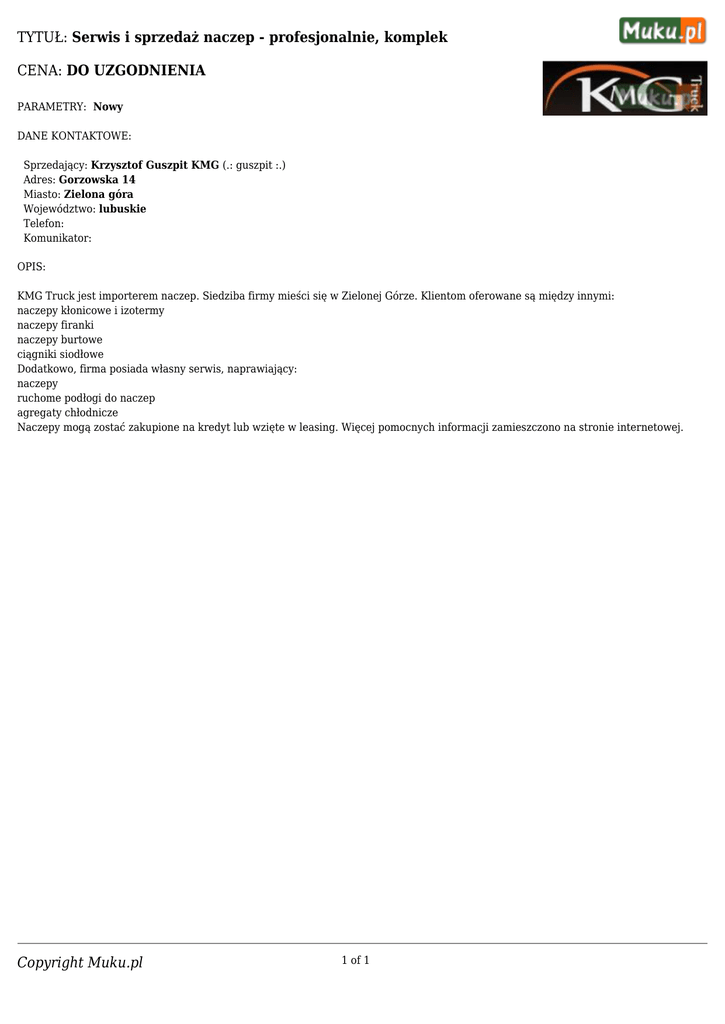 Copyright Muku.pl TYTUŁ: Serwis i sprzedaż naczep