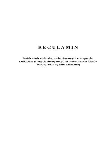 REGULAMIN instalowania wodomierzy mieszkaniowych oraz sposobu rozliczania za zużycie zimnej wody z odprowadzeniem ścieków i ciepłej wody wg ilości zmierzonej 2 I. POSTANOWIENIA OGÓLNE §1 Znaczenie określeń przyjętych w regulaminie: 1. Użytkownik lokalu – jest to osoba fizyczna lub prawna posiadająca jeden z tytułów prawnych do lokalu w budynku: I. II. III. IV. V. spółdzielcze lokatorskie prawo do lokalu, spółdzielcze własnościowe prawo do lokalu, prawo odrębnej własności, najem lokalu na podstawie zawartej umowy, użytkownikiem lokalu jest również osoba fizyczna lub prawna czasowo nie posiadająca tytułu prawnego do lokalu. 2. mieszkaniec – każda osoba zamieszkująca w lokalu, 3. wodomierz główny – przyrząd pomiarowy mierzący ilość pobranej wody, zainstalowany na przyłączu wodociągowym do budynku, 4. wodomierz indywidualny – przyrząd pomiarowy mierzący ilość pobranej wody, zainstalowany w lokalu użytkownika, 5. okres rozliczeniowy – okres obejmujący – rozliczenie półroczne do 30 kwietnia i 31 października, 6. opłata zaliczkowa – jest to średnie zużycie zaokrąglone w górę do pełnego m3 w lokalu pomnożone przez cenę jednostkową za wodę i ścieki, 7. zaliczkowe opłaty ustala się po każdym okresie rozliczeniowym, 8. rozliczenie zużycia wody – dokument przedstawiający wyliczenie należności za zużycie wody i odprowadzenie ścieków wg wskazań wodomierzy lokalowych i wodomierza głównego za okres rozliczeniowy pomniejszone o sumę przedpłat za ten okres. II. SPOSOBY EKSPLOATACJI WODOMIERZY. § 2. 1. Zainstalowane wodomierze stanowią własność Spółdzielni lub użytkownika zgodnie z treścią oświadczenia. Spółdzielnia przejmuje wodomierze bez przyłączy. 2. Użytkownik deklaruje jeden z dwóch sposobów eksploatacji wodomierzy I. przekazuje nieodpłatnie wodomierz(e) Spółdzielni. W przypadku montażu wodomierza(y) we własnym zakresie, przejęcie ich do eksploatacji nastąpi po wygaśnięciu gwarancji. II. zobowiązuje się eksploatować wodomierz(e) we własnym zakresie i ponosić związane z tym koszty (w eksploatacji mieści się 5 letnia legalizacja). 3 III. OBOWIĄZKI I PRAWA UŻYTKOWNIKA LOKALU. § 3. Obowiązkiem użytkownika jest: 1. Udostępnienie lokalu do odczytu wodomierzy w oznaczonym terminie, do wymiany wodomierzy lub ich legalizacji upoważnionym pracownikom Spółdzielni. 2. Udostępnienie lokalu do dokonania remontu, usunięcia awarii, przeglądu technicznego oraz w innym koniecznym przypadku upoważnionym przez Spółdzielnią pracownikom Spółdzielni lub innych firm legitymujących się stosownym identyfikatorem i upoważnieniem Spółdzielni. 3. W przypadku gdy w lokalu znajdują się zwierzęta domowe, to na czas obecności pracowników technicznych Spółdzielni, użytkownik zobowiązany jest do zapewnienia bezpieczeństwa przebywającym w lokalu pracownikom i zamknięcia zwierząt w oddzielnym pomieszczeniu. 4. W celu sprawdzenia prawidłowego podłączenia urządzeń poboru wody (pralka automatyczna, spłuczka i inne) użytkownik zobowiązany jest umożliwić odczytującym pracownikom technicznym Spółdzielni chwilowe uruchomienie zainstalowanych urządzeń dla stwierdzenia poboru wody i jej pomiaru przez wodomierze. 5. Każdy użytkownik, w przypadku wątpliwości co do prawidłowego pomiaru zużycia wody, ma prawo i obowiązek niezwłocznie zgłosić ten fakt do Spółdzielni, celem dokonania kontroli i weryfikacji. W przypadku stwierdzenia, że wodomierz był sprawny technicznie, użytkownik ponosi koszty ekspertyzy, legalizacji i oplombowania wodomierzy. IV. OBOWIĄZKI I PRAWA SPÓŁDZIELNI § 4. Do obowiązków Spółdzielni należy: 1. Dokonywanie odczytów wskazań wodomierzy w wyznaczonym terminie, wystawianie rozliczenia i ustalenie przedpłaty oraz przekazanie tych dokumentów użytkownikowi lokalu. 2. Dokonywanie kontrolnych odczytów i kontrolowania stanu technicznego urządzeń pomiarowych, tzn. czy plomby są nienaruszone, czy wodomierze dokonują prawidłowego pomiaru poboru wody, czy nie ma wykonanych tzw. „obejść” wodomierzy umożliwiających pobór wody bez jej pomiaru, czy nie ma uszkodzeń opraw wodomierzy i innych nieprawidłowości. 4 3. Wymiana i legalizacja wodomierzy winny być zgodne z obowiązującą ustawą „Prawo o miarach” i przepisami Głównego Urzędu Miar. 4. Spółdzielnia ma prawo do dokonywania kontroli sprawności wodomierza poprzez chwilowe uruchomienie punktu poboru wody i stwierdzenie pomiaru wody przez wodomierze oraz przez oględziny zewnętrzne wodomierza. V. ROZLICZANIE ZUŻYCIA WODY I ODPROWADZENIA ŚCIEKÓW W LOKALACH Z WODOMIERZAMI. § 5. Rozliczenie wody w lokalach mieszkalnych i użytkowych: 1. W lokalach mieszkalnych i użytkowych posiadających zamontowane wodomierze zużycia wody rozlicza się wg wskazań wodomierzy. Ilość odprowadzanych ścieków jest równa ilości pobranej wody w danym okresie. 2. Użytkownik wnosi na poczet należności za zużycie wody i odprowadzanie ścieków przedpłaty miesięczne przy opłacie czynszowej w terminie do 20 każdego miesiąca. 3. Wysokość przedpłaty wyliczana jest na podstawie średniego zużycia wody w danym lokalu w poprzednim okresie rozliczeniowym. 4. Użytkownik obowiązany jest do uregulowania należności zgodnie z rozliczeniem wniesionych przedpłat za zużycie wody i odprowadzanie ścieków w poniższy sposób: I. w przypadku niedopłaty – kwotę niedopłaty należy dodać do najbliższej opłaty czynszowej, II. w przypadku nadpłaty – kwotę nadpłaty należy odjąć od najbliższej opłaty czynszowej. 5. W przypadku zmiany cen przyjmuje się zużycie średnio miesięcznie z całego okresu rozliczeniowego, lub wg dodatkowych odczytów wodomierza w okresie gdy dokonywana jest podwyżka. VI. ROZLICZANIE ZUŻYCIA WODY OPŁATA STAŁA I ZMIENNA. § 6. 1. Poza opłatą za m3 zużycia i podgrzania wody pobierana będzie opłata stała w złotych na mieszkanie za 