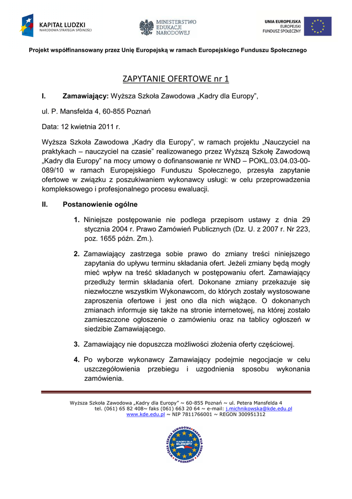 ZAPYTANIE OFERTOWE NR 1 ewaluacja