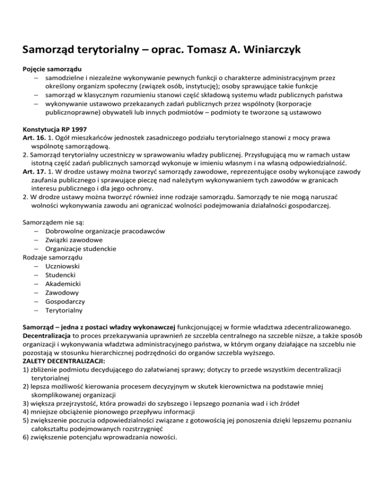 Samorząd terytorialny oprac. Tomasz A. Winiarczyk