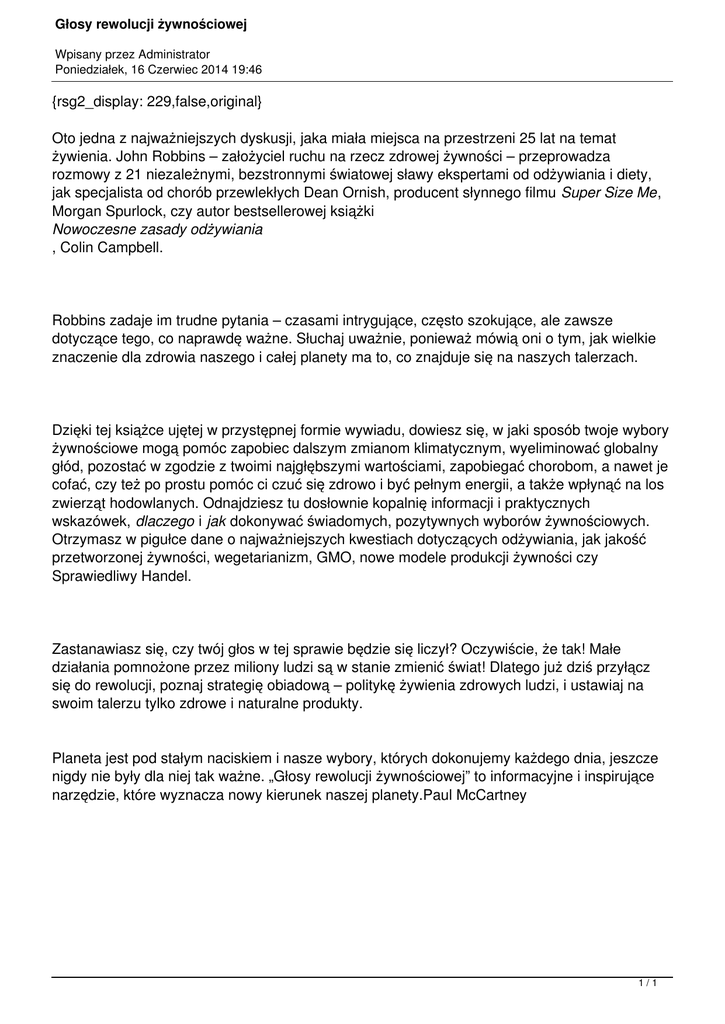 Głosy rewolucji żywnościowej