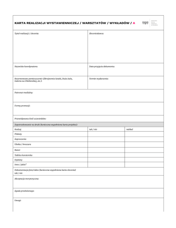 karta realizacji wystawienniczej / warsztatów / wykładów / a