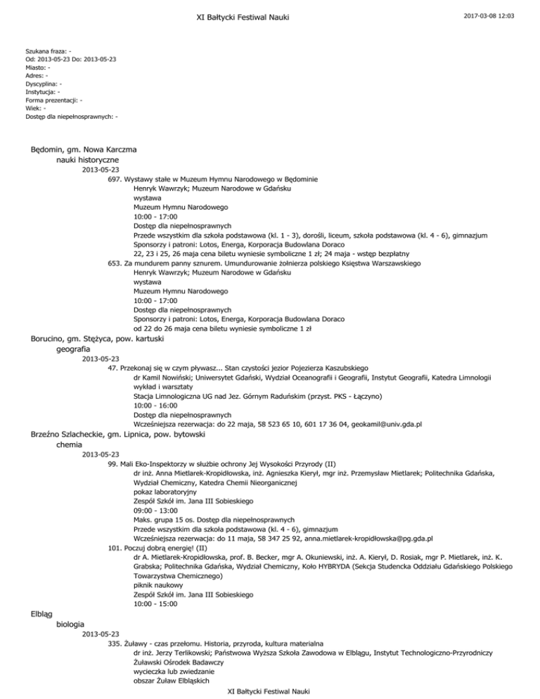 23 maja (czwartek) - Bałtycki Festiwal Nauki