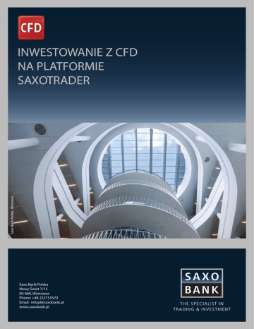 Saxo Bank Polska, Warszawa INWESTOWANIE Z CFD NA PLATFORMIE SAXOTRADER Saxo Bank A/S Headquarters Philip Heymans Allé 15 DK - 2900 Hellerup, Denmark Saxo Polska Phone:Bank +45 3977 4000 Nowy Fax: +45Świat 39777/15 4200 Web: www.saxobank.com 00-469, Warszawa Phone: +48 222755570 For [email protected] information contact our office in Cyprus Email: Phone: +357 250 21 121 www.saxobank.pl Email: [email protected] JAK OBRACAĆ KONTRAKTAMI CFD NA AKCJE, TOWARY I INDEKSY NA PLATFORMIE SAXOTRADER Aby uzyskać pomoc, naciśnij F1 na swojej klawiaturze 1. Najpierw, wyczyść swój obszar roboczy poprzez kliknięcie Plik > Widok > Dodaj widok. 2. Aby znaleźć np. kontrakty CFD, na Polskie Akcje, wybierz zakładkę Zawieranie transakcji i kliknij Eksplorator instrumentów. 3. W polu Wyszukaj wpisz np. Warsaw, odnajdzie WSE – Warsaw Stock Exchange i wszystkie Akcje / CFD na Akcje na tej giełdzie. 2 4. Teraz w zakładce Zawieranie transakcji kliknij Moduły transakcyjne > Transakcje CFD. 5. Otworzy się okno transakcji CFD. Możesz kliknąć strzałki, aby rozwinąć więcej opcji. Saxo Bank Polska | Τel: +48 222755570 | Email: [email protected] | Web Site: www.saxobank.pl 3 6. W polu “Kontrakt” wpisz nazwę CFD, którym chcesz obracać. Na poniższym przykładzie wybraliśmy do obrotu CFD na Akcje Cinema City International. WAŻNE W przypadku rachunku DEMO ceny są opóźnione o około15 minut. Zlecenie należy złożyć w drugiej części okna modułu (Zlecenia). Na rachunku LIVE istnieje możliwość wykupienia subskrypcji do notowań bieżących na danej giełdzie i wykonywania transakcji po bieżących cenach rynkowych. Kontrakt: Wybierz CFD na indeks lub akcję, którym chcesz obracać. Ilość: Wpisz liczbę kontraktów, którą chcesz kupić lub sprzedać. Wartość nominalna: Całkowita wartość transakcji. Szacunkowe dzienne odsetki: Dzienne oprocentowanie doliczane do bądź odciążające Twoje konto za każdy dzień w którym utrzymujesz otwartą pozycję, (jeśli zamkniesz pozycję w ciągu dnia - intraday, nie są naliczane odsetki). Więcej informacji o szacunkowym dziennym oprocentowaniu można znaleźć na stronie Saxo Bank www.SaxoBank.pl Depozyt Zabezpieczający: Kwota zablokowana na Twoim rachunku by wykonać zlecenie. Ta kwota zostanie uwolniona w momencie zamknięcia pozycji. 7. Po wpisaniu wszystkich informacji, aby potwierdzić chęć wykonania transakcji kliknij Złóż zlecenie. Pojawi się okno potwierdzające wykonaną transakcje ze wszystkimi istotnymi informacjami. 4 ZESTAWIENIE RACHUNKU Klikając na Rachunek > Stan Rachunku możesz zobaczyć pozycje otwarte na Twoim koncie: WAŻNE Można składać zlecenia powiązane do otwartych pozycji, bezpośrednio z zestawienia rachunku Zamknij pozycje Kliknij ikonę Zamknij pozycje aby ją zamknąć Zlecenie Limit Kliknij ikonę Limit aby złożyć zlecenie powiązane Limit – pobranie zysku Zlecenie Limit Kliknij ikonę Zlecenie Stop aby założyc zlecenie powiązane typu stop – minimalizacja strat Pozycja zbilansowana / kwadratowa Kliknij ikonę squared/kwadrat aby zbilansować pozycje Saxo Bank Polska | Τel: +48 222755570 | Email: [email protected] | Web Site: www.saxobank.pl 5 8. Klikając jedną z ikonek możesz złożyć odpowiednio zlecenia powiązane Limit oraz Stop Loss. Po wpisaniu cen, potwierdź klikając na Złóż zlecenie(a). 9. Aby zobaczyć zlecenia oczekujące (te, które nie zostały jeszcze wykonane), kliknij na Zawieranie transakcji > Złożone zlecenia. Klikając na widoczne zlecenie, możesz je odwołać, zmienić lub zamienić je na zlecenie rynkowe. 6 10. Inny sposób wglądu do wszystkich otwartych pozycji: kliknij Zawieranie Transakcji > Zestawienie pozycji. Z tego modułu istnieje możliwość zamknięcia otwartej pozycji, złożenia zleceń powiązanych typu Stop Loss i Limit (Take Profit). Kliknij żeby zobaczyć wszystkie otwarte pozycje Kliknij żeby złożyć zlecenie powiązane typu Stop Loss Kliknij żeby złożyć zlecenie powiązane typu Limit Wybrana cena zlecenia powiązanego jest wyświetlana z widoczną odległością do rynku. W miarę zmniejszania odległości pole staje się zielone. MODUŁ WYKRESÓW 11. Aby otworzyć moduł wykresów kliknij Zawieranie Transakcji > Nowy wykres. Wybierz interesujący Cię instrument. Dodatkowo na wykresie znajdują się ikonki pokazujące otwarte pozycje oraz zlecenia powiązane do danego instrumentu Saxo Bank Polska | Τel: +48 222755570 | Email: [email protected] | Web Site: www.saxobank.pl 7 12. Aby złożyć trzy-stronne zlecenie powiązane, przejdź do Zawieranie transakcji > Zlecenia > Zlecenia CFD. Zlecenia trzy-stronne składają się ze zlecenia pierwotnego które zostanie zrealizowane jak tylko warunki na rynku na to pozwolą, oraz dwóch zleceń drugorzędnych które zostaną aktywowane wówczas gdy pierwsze zlecenie zostanie wykonane. Zlecenia drugorzędne są ze sobą powiązane jako OCO (One Cancels the Other – Jedno anuluje drugie), pozwalając na założenie zleceń Stop Loss i Take Profit wokół jednej pozycji. Kontrakt: Nazwa kontraktu, którym chcesz obracać. Aby wyszukać instrument wpisz ticker, nazwę firmy, lub kliknij by wyszukać na giełdzie. Ilość: Ilość kontraktów CFD, które chcesz kupić lub sprzedać. Kupno/Sprzedaż: Złóż zlecenie kupna lub sprzedaży. Typ: Wybierz rodzaj zlecenia; Limit, Po cenie rynkowej, Stop, Stop Limit lub Stop Kroczący. Cena: Cena instrumentu, po której chcesz zrealizować transakcje. Okres ważności: Okres ważności zlecenia. Zlecenie(a) powiązane: Wybierz ‘If done’ w celu złożenia zleceń powiązanych. Złóż zlecenie powiązane typu Limit: Zlecenie drugorzędne powiązane z pierwotnym zleceniem. Złóż zlecenie powiązane typu stop loss: Zlecenie drugorzędne powiązane z pierwotnym zleceniem. 8 TYPY ZLECEŃ CFD Po cenie rynkowej Zlecasz kupno lub sprzedaż określonego instrumentu tak szybko jak możliwe po cenie rynkowej. Zlecasz kupno lub sprzedaż okre
