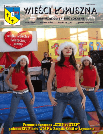 ISSN 1733-6015 Wieści Łopuszna SAMORZĄDOWE PISMO LOKALNE styczeń 2006 Rok III nr 1 (6) gazeta bezpłatna FOT. AGNIESZKA PALACZ kwartalnik Formacja taneczna „STEP by STEP” podczas XIV Finału WOŚP w Zespole Szkół w Łopusznie Z DZIAŁALNOŚCI RADY GMINY I URZĘDU GMINY Wykaz inwestycji zrealizowanych w 2005 roku Budowa wodociągu Nowek – Dobrzeszów Budowa wodociągu Dobrzeszów – Podgóra Remont pieców w Zespole Szkół w Łopusznie Stacja uzdatniania wody w Wielebnowie L.p. 1. 2. 3. 4. 5. 6. 7. 8. 9. 10. 11. 12. 13. 14. 15. 2 Nazwa inwestycji Budowa sieci wodociągowej Dobrzeszów - Podgórze, Podewsie, Nowek o długości 12,1 km, 65 sztuk przyłączy o dł. 1952 mb. Zrealizowano ze środków ZPORR, budżetu państwa oraz budżetu Gminy Łopuszno. Wykonanie dodatkowych przyłączy w Dobrzeszowie - Podgórze i Nowku (17 sztuk przyłączy). Zrealizowane ze środków budżetu Gminy Łopuszno. Sprawowanie nadzoru inwestorskiego przy budowie w/w sieci wodociągowej. Zrealizowano ze środków budżetu Gminy Łopuszno. Budowa Stacji Uzdatniania Wody z infrastrukturą towarzyszącą w Wielebnowie. Wybudowano ze środków budżetu Gminy Łopuszno przy udziale środków wojewódzkiego Funduszu Ochrony Środowiska i Gospodarki wodnej w Kielcach w formie pożyczki. Sprawowanie nadzoru inwestorskiego przy budowie w/w inwestycji. Zrealizowano ze środków budżetu Gminy Łopuszno. Remont drogi powiatowej Wierna Rzeka - Łopuszno odcinek przez wieś Fanisławice o dł. 630 mb, oraz drogi powiatowej Grabownica – Marianów o dł. 880 mb. Finansowanie w 50% budżet Gminy Łopuszno, 50% budżet Powiatowego Zarządu Dróg w Kielcach. Remont drogi powiatowej Kuźniaki – Dobrzeszów – Mnin, odcinek Dobrzeszów – Podgóra o dł. 700 mb, oraz drogi powiatowej Sarbice – Wielebnów, odcinek w m. Olszówka o dł. 500 mb. Finansowanie w 50% budżet Gminy Łopuszno, 50% budżet Powiatowego Zarządu Dróg w Kielcach. Budowa Sali gimnastycznej w Gnieździskach wraz z instalacjami wewnętrznymi. Zrealizowano ze środków budżetu Gminy Łopuszno przy udziale środkó MENiS. Koszt całkowity 988 428,89 zł. z tego w roku 2005 przerób wyniósł 249 275,01 zł. Przebudowa z rozbudową remizy (zajezdni samochodów strażackich) OSP w Łopusznie. Zrealizowano ze środków budżetu Gminy Łopuszno przy czynnym udziale w pracach budowlanych członków OSP w Łopusznie. Wykonanie remontu pokrycia dachowego na budynku Szkoły Podstawowej w Piotrowcu. Zrealizowano ze środków budżetu Gminy Łopuszno. Wykonanie remontu pokrycia dachowego na budynku „Klub Rolnika” w Czałczynie. Zrealizowano ze środków budżetu Gminy Łopuszno. Wymiana rynien poziomych na budynku mieszkalnym w Łopusznie przy ul. Włoszczowskiej 40. Zrealizowano ze środków budżetu Gminy Łopuszno. Gminne Centrum Informacji w Łopusznie ul. Konecka 12 (zakupienie 10 zestawów komputerowych wraz z oprogramowaniem, umeblowaniem i remontem pomieszczenia). Zrealizowano ze środków budżetu Gminy Łopuszno oraz ze środków Ministerstwa Gospodarki i Pracy z Programu Aktywizacji Zawodowej w ramach podpisanej umowy z WUP w Kielcach. Wykonanie remontu dróg gminnych w Rudzie Zajączkowskiej o dł. 900 mb oraz Fanisławiczkach o dł. 400 mb. Zrealizowano ze środków budżetu Gminy Łopuszno. Opracowanie projektu budowlano-wykonawczego chodnika dla pieszych w pasie drogi wojewódzkiej nr 786 na odcinku Łopuszno-Wielebnów. Zrealizowano ze środków budżetu Gminy Łopuszno. Wieści Łopuszna Wartość w zł. 742 401,83 33 469,60 4 877,56 571 404,21 2 500,00 Wykonawca Firma Handlowo Usługowa „UNICUS” Czesław Wojtal, ul. Robotnicza 52, 32-200 Miechów. Firma Handlowo Usługowa „UNICUS” Czesław Wojtal, ul. Robotnicza 52, 32-200 Miechów. Urządzenia i Systemy Grzewcze „caloria”, ul. E. Meissnera 4/17, 25-634 Kielce. Zakład Usług Wodno-Kanalizacyjnych i Budowlano Montażowych „HYDROBUD” Władysław Krzysiek, ul. Weroniki 26/72, 25-658 Kielce. Pracownia Usług Inwestycyjnych i Projektowych „WEKTOR” inż. Mieczysław Gołębiowski, ul. Pomorska 64, 25-343 Kielce. 121 338,15 „BUDROMOST - STARACHOWICE” Sp. z o.o., ul. Św. Rocha 31, 27-215 Wąchock. 84 509,40 Przedsiębiorstwo Robót Inżynieryjnych „FART” Sp. z o.o. ul. Ściegiennego 268a, 25-116 Kielce. 249 275,01 Przedsiębiorstwo Budowlano-Usługowo-Handlowe „AGAT” Sp. z o.o. ul. Domaszowska 106, 25-320 Kielce. 120 000,00 Roboty prowadzone systemem gospodarczym oraz osób zatrudnonych z PUP w Kielcach. 20 252,00 5 490,00 2 033,00 Zakład Remontowo Budowlany „MIREK” Mirosław Chęcina, ul. Rzeszowska 13, 25-140 Kielce. Zakład Remontowo Budowlany „MIREK” Mirosław Chęcina, ul. Rzeszowska 13, 25-140 Kielce. Zakład Remontowo Budowlany „MIREK” Mirosław Chęcina, ul. Rzeszowska 13, 25-140 Kielce. 82 884,51 System gospodarczy i zlecony. 118 383,76 Świętokrzyskie Przedsiębiorstwo Robót Drogowych „TRAKT” Sp. z o.o. z siedzibą w Górkach Szczukowskich. 50 105,40 Firma Inżynieryjno-Konsultingowa BIPROSTAL S.A., ul. Królewska 57, 30-081 Kraków. Z DZIAŁALNOŚCI RADY GMINY I URZĘDU GMINY Remont dróg gospodarczych w Łopusznie ul. Zaleskiego oraz odcinek drogi od 16. ul. Kasztanowej w kierunku Czałczyna współfinansowanych ze środków Funduszu Ochrony Gruntów Rolnych oraz budżetu Gminy Łopuszno. Dobudowa 17 szt. opraw oświetlenia drogowego w miejscowości Czałczyn. 17. Zrealizowano ze środków budżetu Gminy Łopuszno. Dobudowa 10 szt. opraw oświetlenia drogowego w miejscowości Piotrowiec. 18. Zrealizowano ze środków budżetu Gminy Łopuszno. 19. 20. 21. 22. 23. 24. 25. 26. 27. 28. wymiana i uzupełnienie lamp oświetlenia w Łopusznie na ul. Ogrodowej 9 szt. oraz na ul. Szkolnej 6szt. Zrealizowano ze środków budżetu Gminy Łopuszno. Przebudowa chodnika na ul. Przedborskiej w Łopusznie od Internatu LO do Banku Spółdzielczego o dł. 80 mb oraz od „studni” do ul. Polnej o dł. 250 mb. Zrealizowano ze środków bud